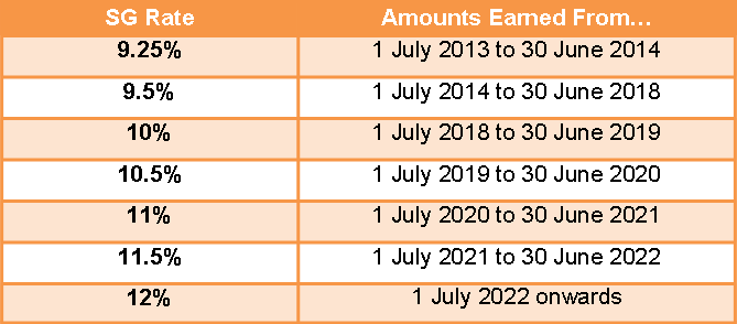 The Government had planned to pause the rate at the current 9.25%; however this plan has been scrapped. The new 9.5% rate will continue to apply until 30 June 2018, after which it will increase to 10% and then incrementally to 12% by 1 July 2022.